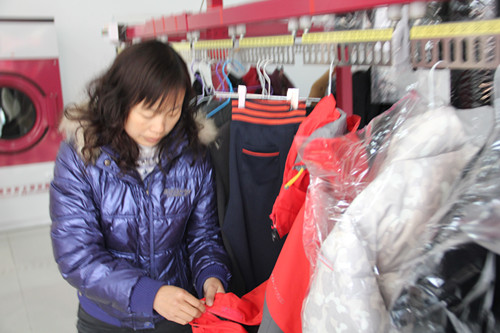 小云算是一個地道的白族姑娘,人們都說白族姑娘勤勞能干,看到小云眼的時候,記者就覺得這句話說得一定沒錯,UCC洗衣干洗店里的衣物都整理的井井有條,就連來取衣物的顧客都豎起大拇指夸她。