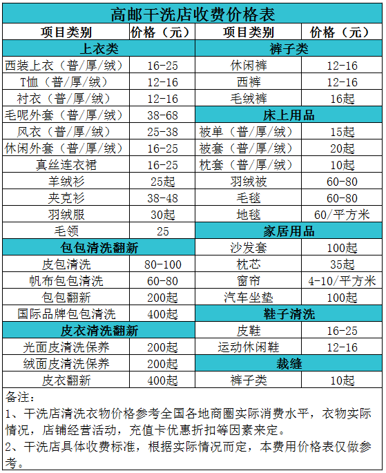 高郵干洗店收費價格表【詳細收費標準】怎么收費更賺錢
