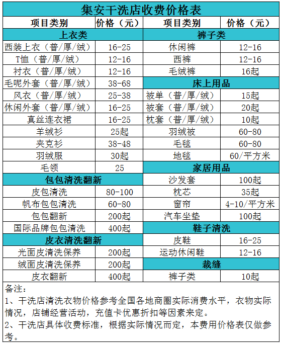 集安干洗店收費(fèi)價(jià)格表【詳細(xì)收費(fèi)標(biāo)準(zhǔn)】怎么收費(fèi)更賺錢(qián)