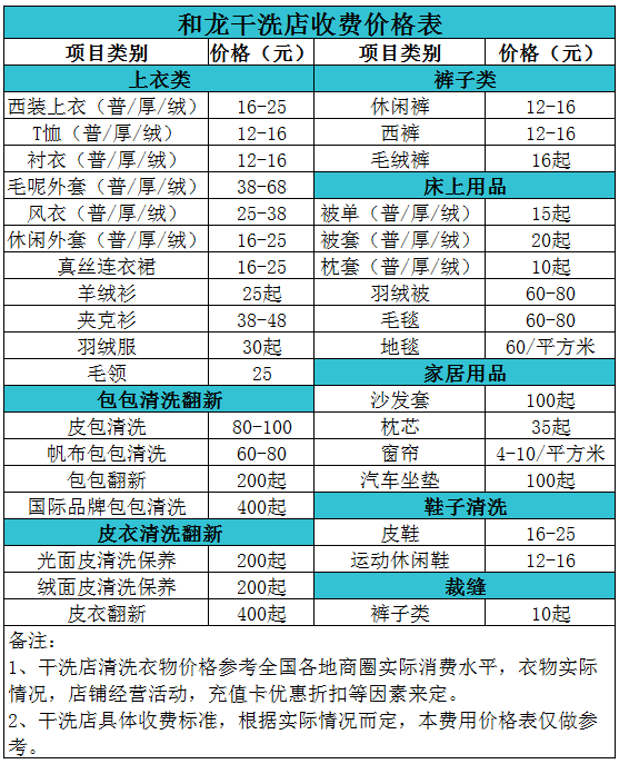 和龍干洗店收費(fèi)價(jià)格表【詳細(xì)收費(fèi)標(biāo)準(zhǔn)】怎么收費(fèi)更賺錢(qián)