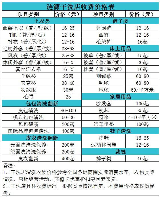 漣源干洗店收費價格表【詳細收費標準】怎么收費更賺錢