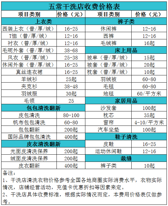五常干洗店收費價格表【詳細收費標(biāo)準(zhǔn)】怎么收費更賺錢