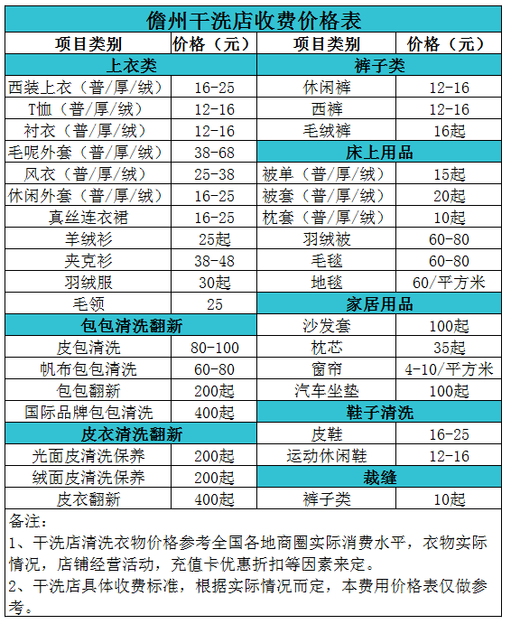 霸州干洗店收費價格表【詳細收費標準】怎么收費更賺錢