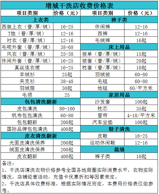 增城干洗店收費價格表【詳細收費標準】怎么收費更賺錢