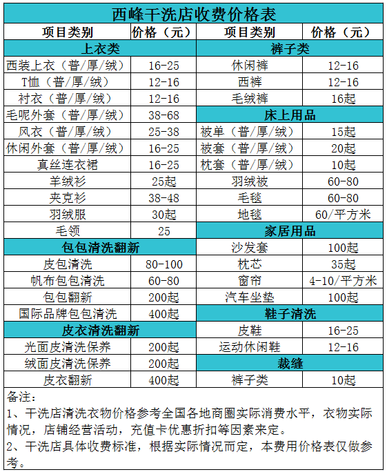 西峰干洗店收費價格表【詳細收費標準】怎么收費更賺錢