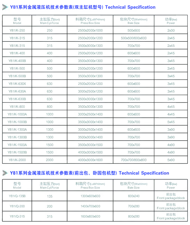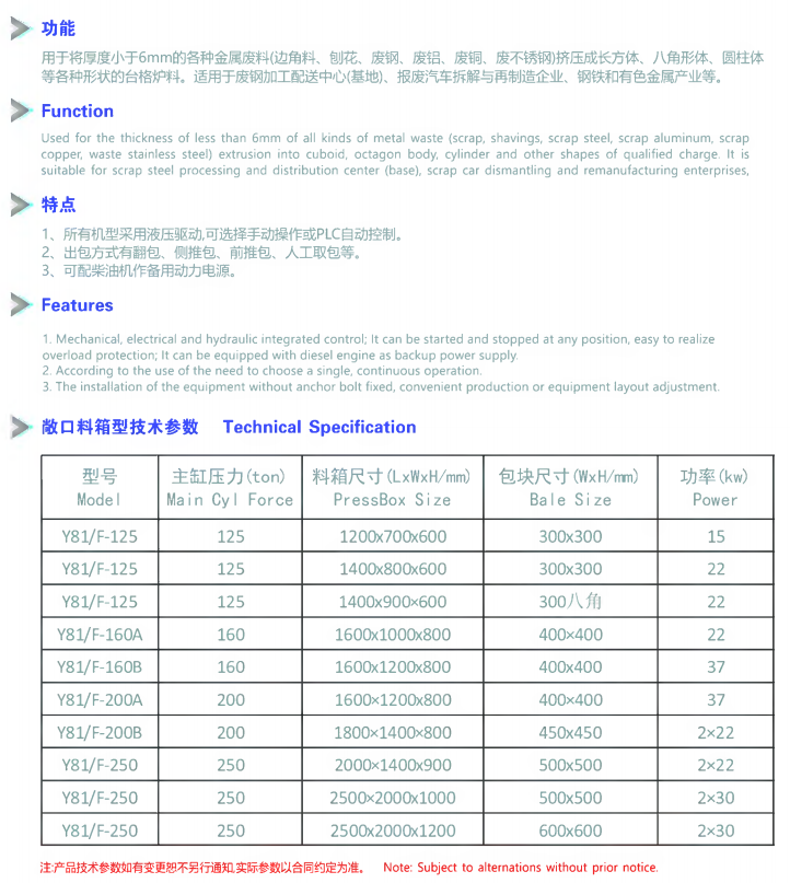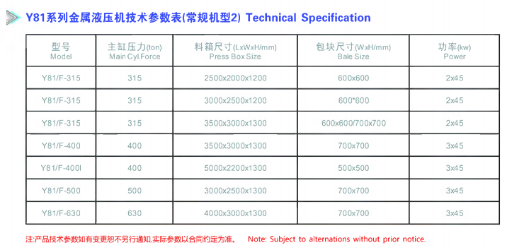 金屬壓縮打包機 Y81系列