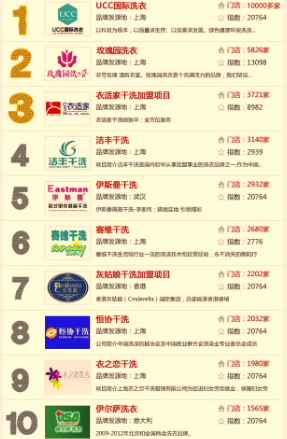 中國洗衣連鎖十強企業